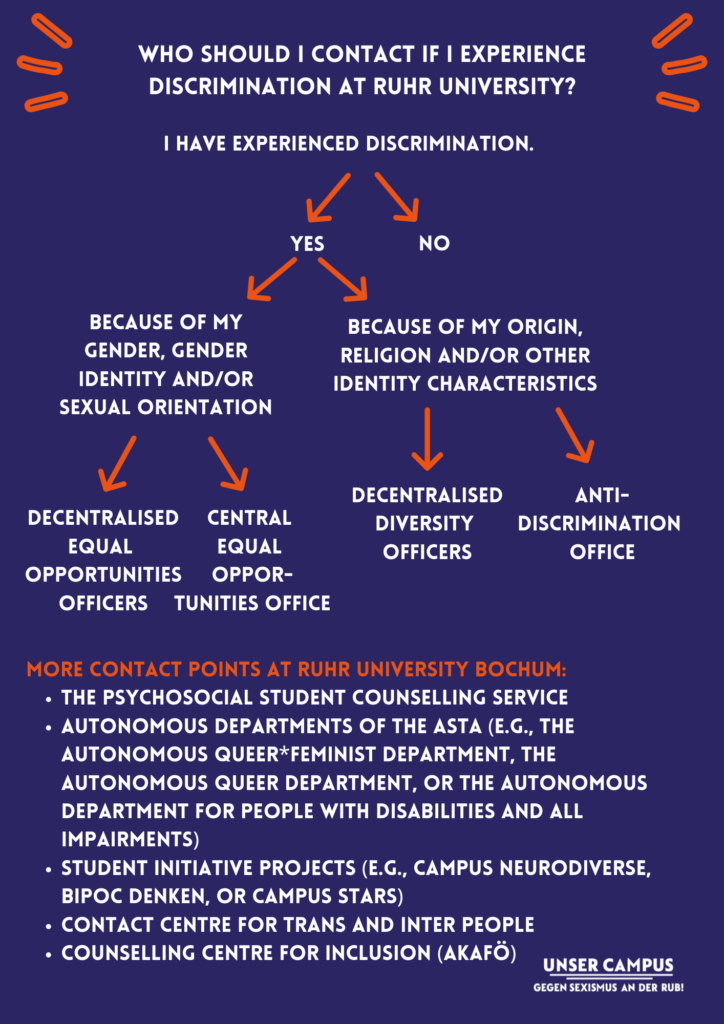 The RUB Anti-Discrimination Office is the central advice, mediation and information point for students, staff and other members of the university who experience or observe discrimination and have questions or need support on the subject.